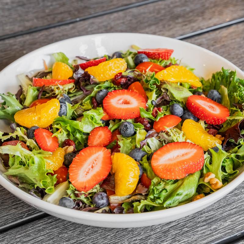 Dressings: House Balsamic | Ranch | French | Creamy Italian | Oil & Vinegar | Thousand Island | Honey Mustard | Bleu Cheese +$0 .75 | Caesar +$0.75 • Add: Chicken +$6.00 | Shrimp +$8.00